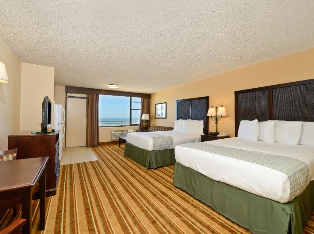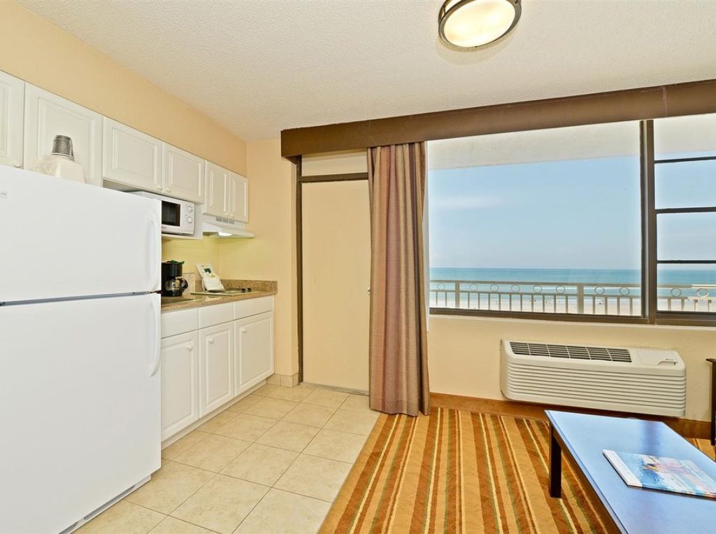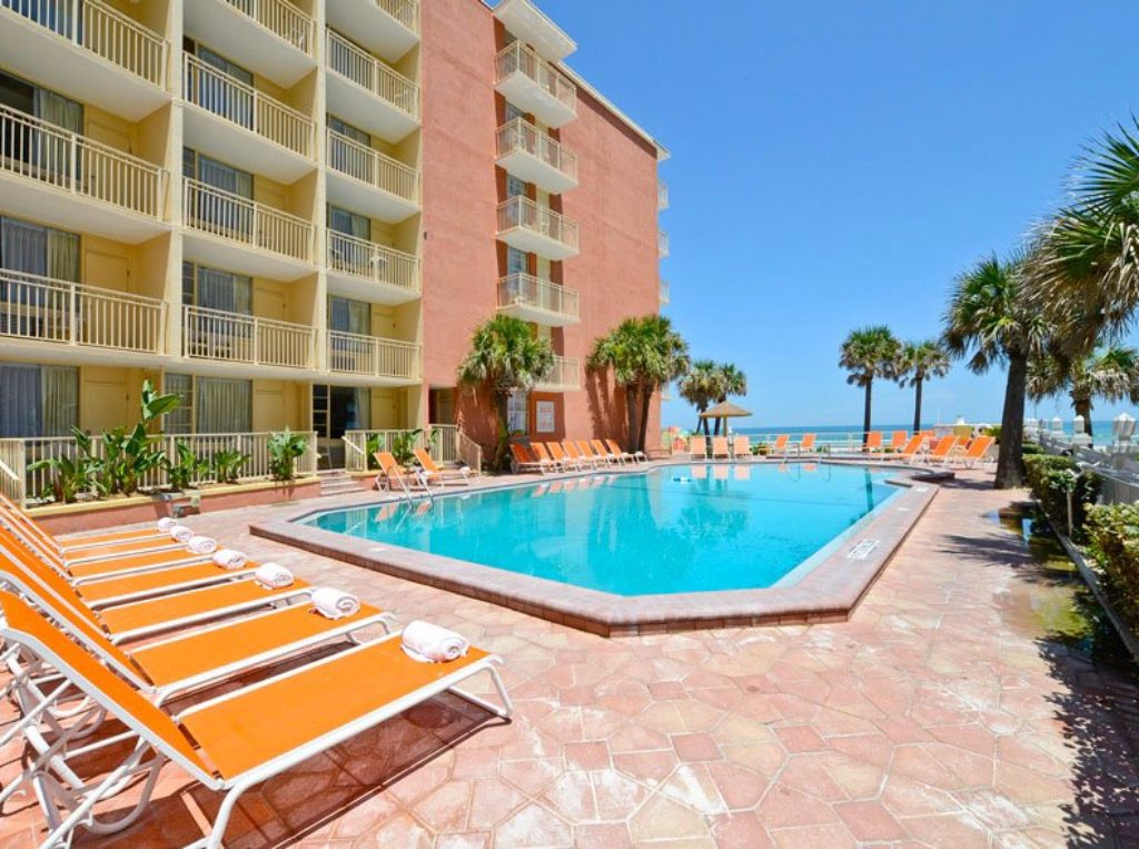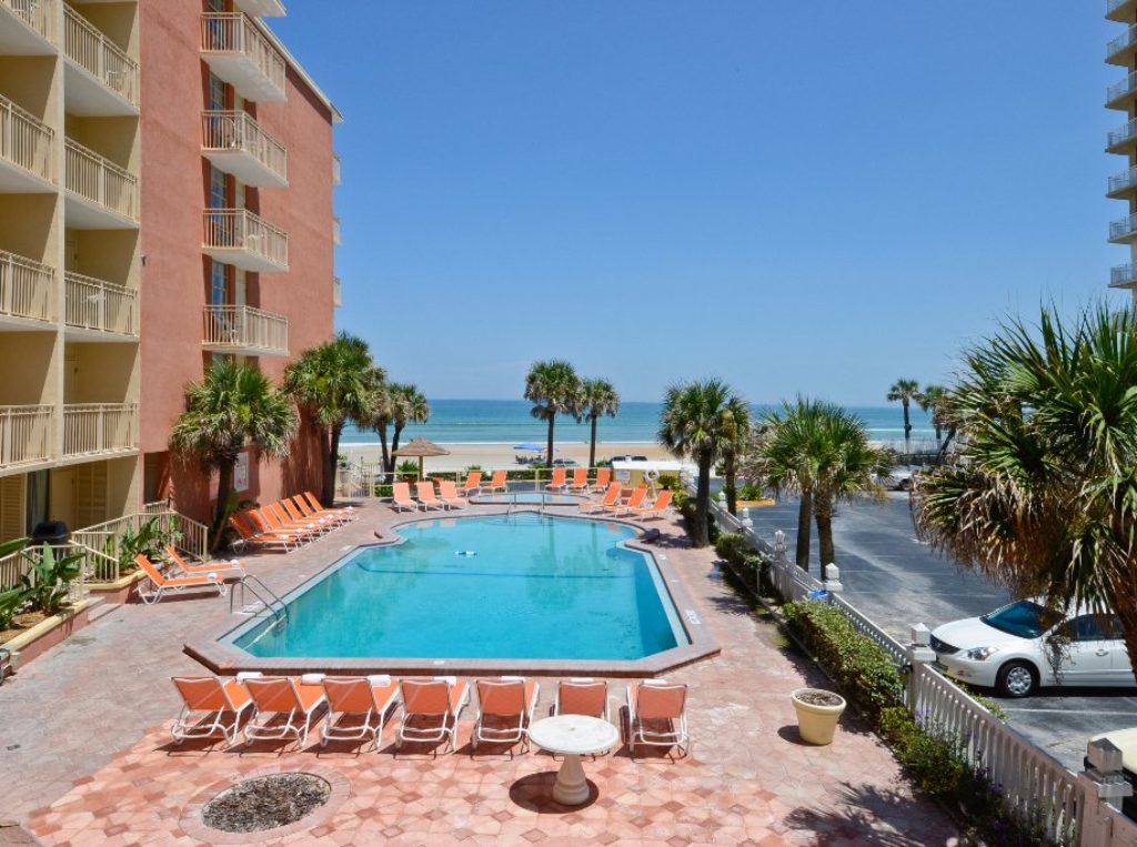 The Daytona Shores Beach Hotel (the former Lexington Inn) offers beachfront rooms, large ocean view family suites and your choice of oceanfront or ocean view efficiencies. We provide the perfect location, the style, and amenities you want and the most value for your money when visiting the Daytona Beach area! Take advantage of our kids to stay free policy (17 and under), heated outdoor pool, private ocean view balconies, and our excellent beachfront location. Additionally, refrigerators, microwaves, coffeemakers, free Wi-Fi and 32-inch flat-panel televisions are included in every room as well as complimentary hot breakfast in the morning. For your convenience, we offer over-sized rooms with full kitchens, suites, and efficiencies. We offer private guest parking. Pets are allowed. Our 106 room property offers the perfect accommodations and location whether you are in town for a vacation with the family, in need of extended stay accommodations or traveling with a group.