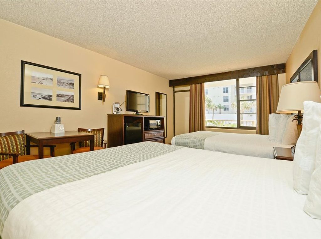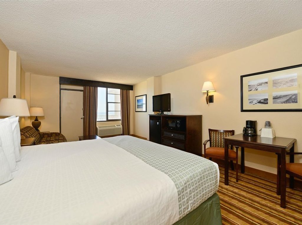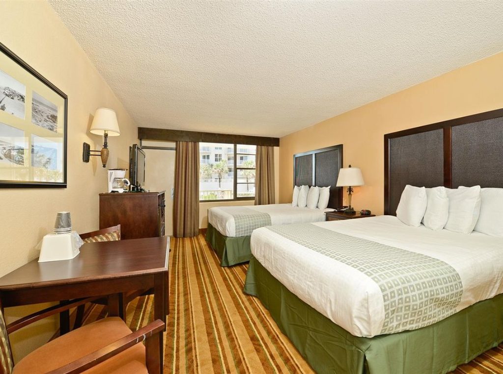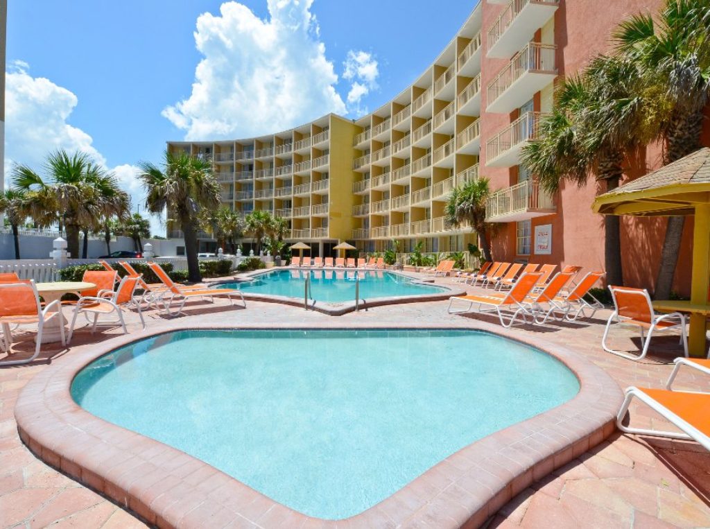 The Daytona Shores Beach Hotel (the former Lexington Inn) offers beachfront rooms, large ocean view family suites and your choice of oceanfront or ocean view efficiencies. We provide the perfect location, the style, and amenities you want and the most value for your money when visiting the Daytona Beach area! Take advantage of our kids to stay free policy (17 and under), heated outdoor pool, private ocean view balconies, and our excellent beachfront location. Additionally, refrigerators, microwaves, coffeemakers, free Wi-Fi and 32-inch flat-panel televisions are included in every room as well as complimentary hot breakfast in the morning. For your convenience, we offer over-sized rooms with full kitchens, suites, and efficiencies. We offer private guest parking. Pets are allowed. Our 106 room property offers the perfect accommodations and location whether you are in town for a vacation with the family, in need of extended stay accommodations or traveling with a group.